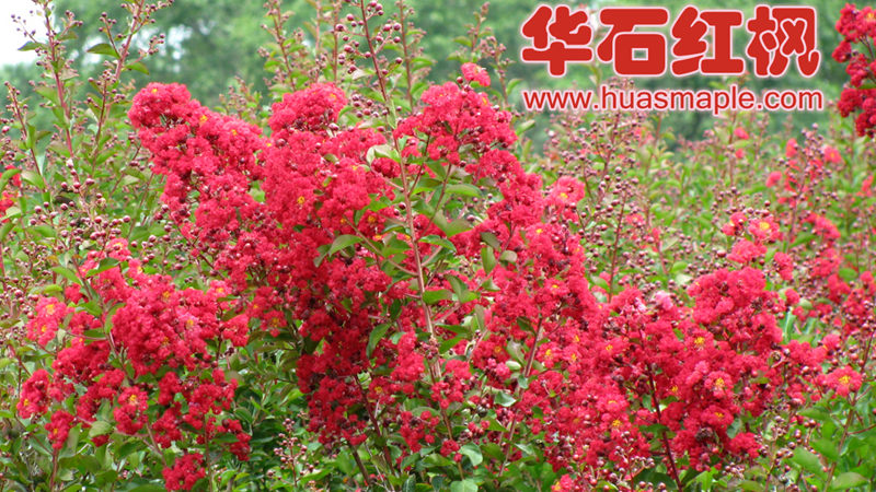 • 3、花最红、花簇最大:花簇最大可达24英寸,花量大且花瓣密集,花色艳丽。花在晴热天为猩红色,是珍贵的大红紫薇品种。7月开花,持续四月。